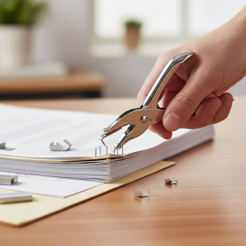 ¡Adiós a las grapas rebeldes! La Mini Quitagrapas es tu aliada perfecta para mantener tus documentos impecables sin complicaciones. Con sus compactos 132x65 mm, cabe en cualquier rincón de tu mochila o escritorio. Construida con materiales metálicos de primera calidad, esta herramienta aguanta todo lo que le eches. Su diseño ergonómico garantiza un agarre cómodo y natural, mientras que su funcionamiento intuitivo hace que sacar grapas sea pan comido. Ideal para estudiantes y profesionales que no tienen tiempo para andar con herramientas complicadas. ¡Eficiencia y comodidad en un solo producto!